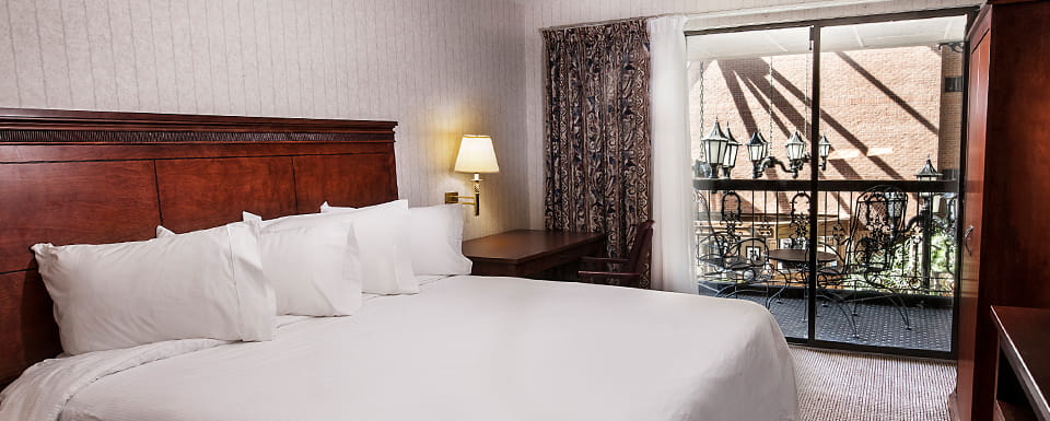 Enjoy a romantic stay in a Whirlpool Suite featuring signature plush bedding and an oversized jetted whirlpool tub. These suites are made for relaxing together.